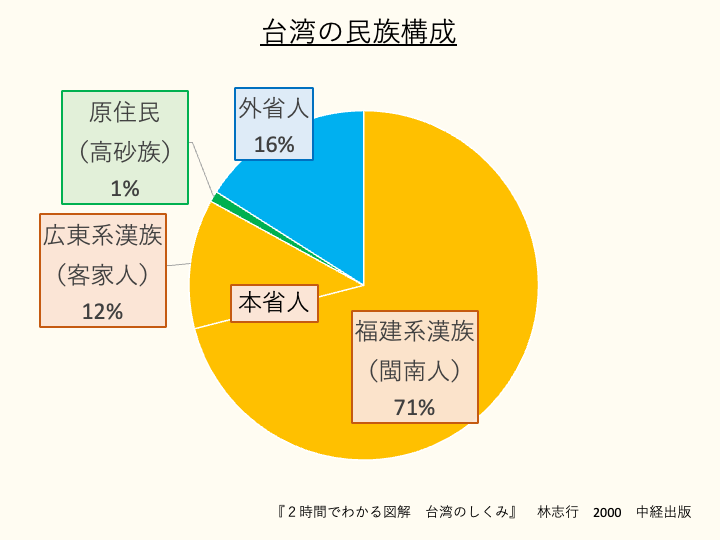 漢民族は大きく分けて2つのグループに分けられます。本省人と外省人です[2], [3], [4]。