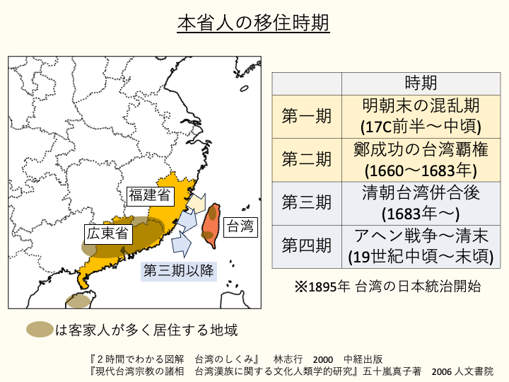 本省人の移住時期は、第一期から第四期まであるとされています[2]。