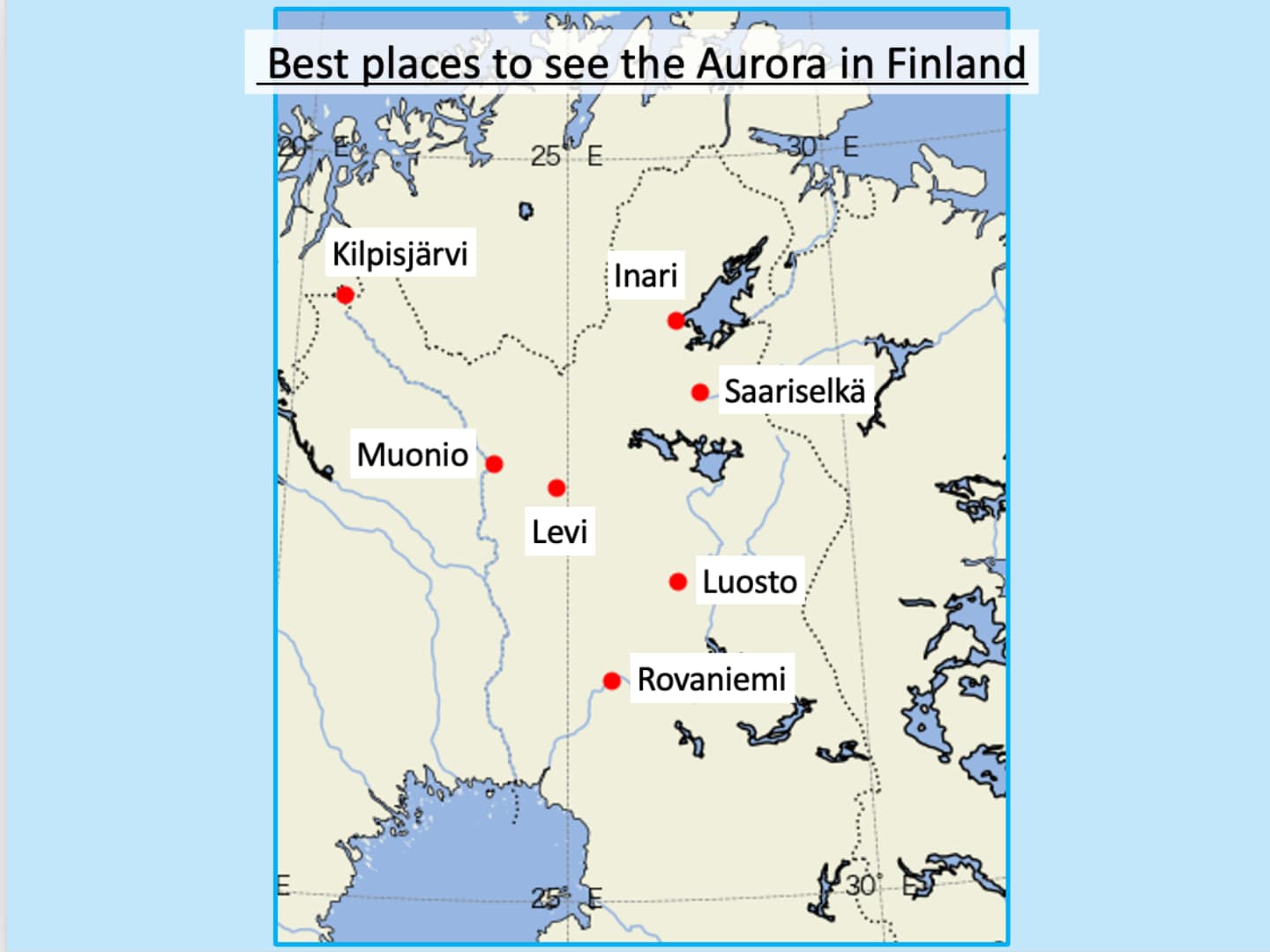 As a rule of thumb, the further north you go, the better your chances of seeing strong auroras in Finland.