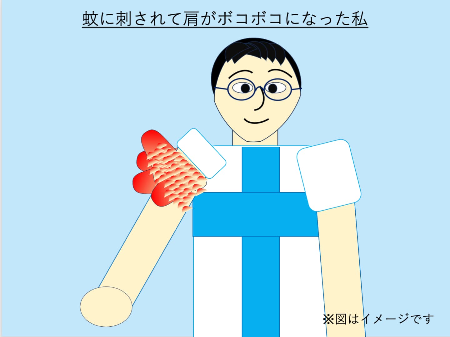 7月9日。目覚めると、右肩がポコポコと腫れあがっていました。