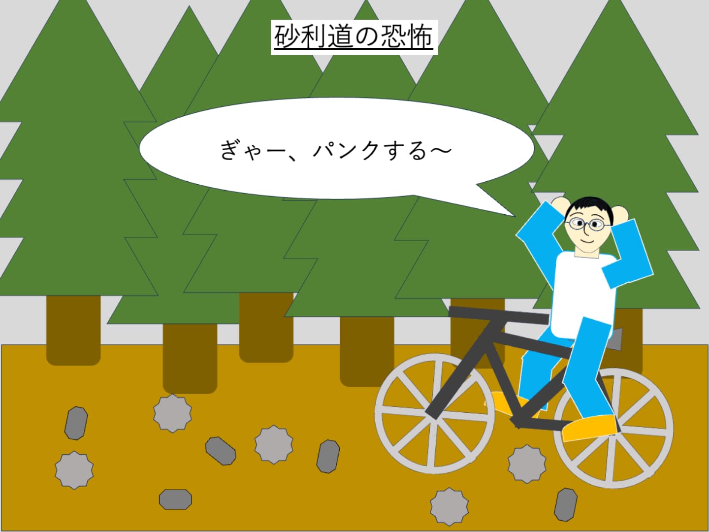 いつも持ち歩いているお守りと、存在するかわからないフィンランドの砂利道の神様と、自転車のタイヤの神様に必死に念を送りました。