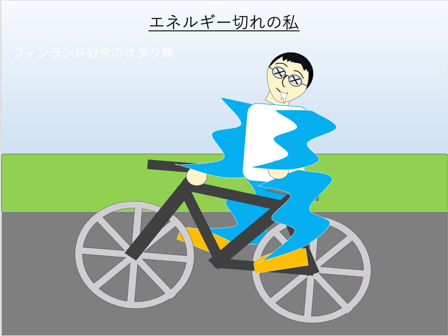 自転車を漕ぐ力が弱まっています。なぜか力が出ないのです。身体からどんどん力が抜けていくような、力を吸い取られているような、不思議な感覚でした。