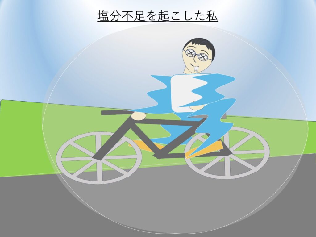 考えていると思いつきました。たっぷりあるではありませんか。身体から湧き出た塩分が…。意識がボヤけるくらいに塩分が足りていないのだとすれば、躊躇ってなどいられません。自転車を漕ぎながらも、試しに汗で塩が結晶化している腕をペロリと舐めてみました。