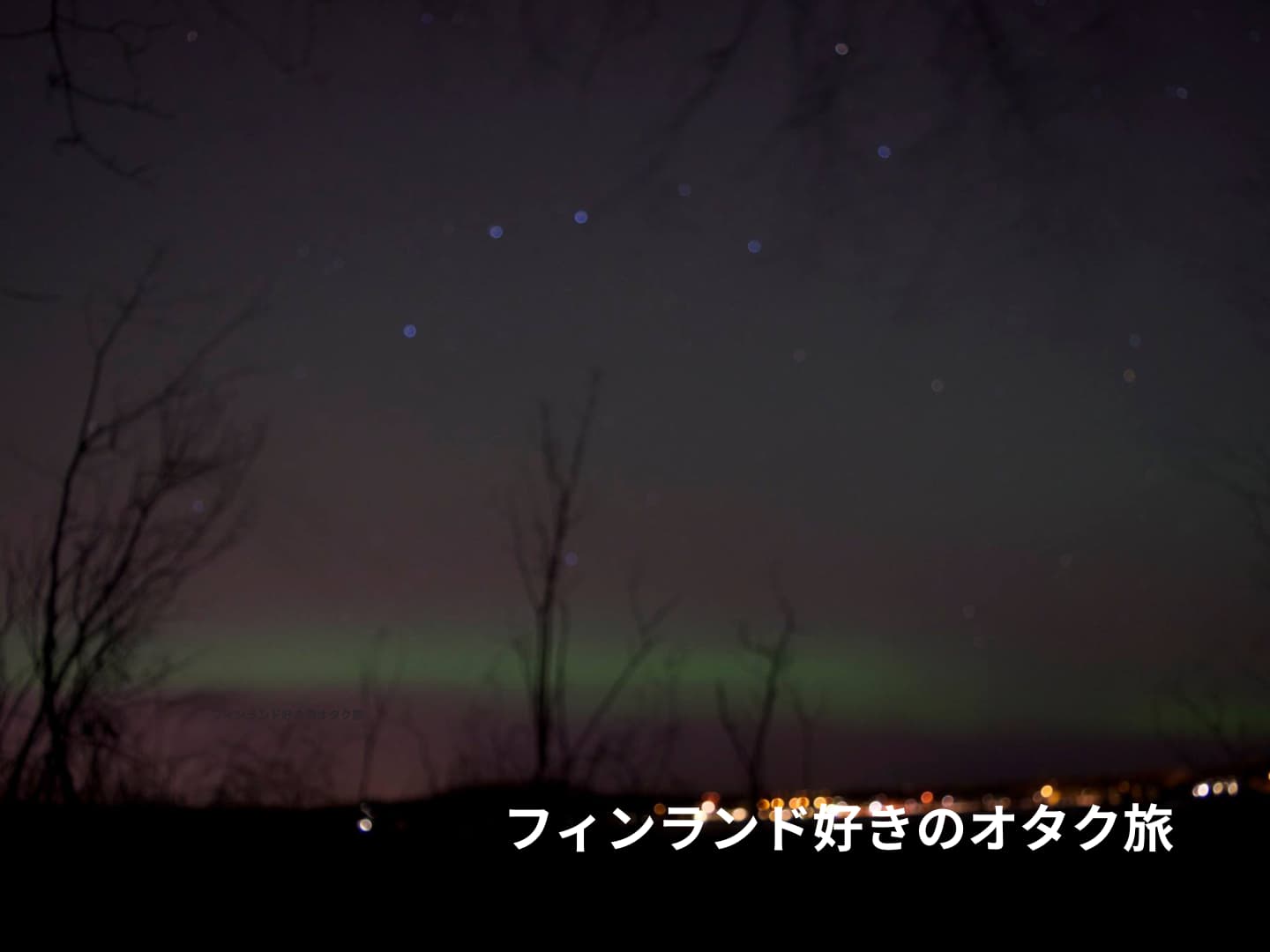 緯度が低いOuluではこれが多いです。色も形もぼんやりしています。肉眼で見ると「雲かな?」と思って、写真で撮ると、うっすら色が付いていて、「あ、やっぱりオーロラか」とわかるような本当に煮え切らないぐずぐずしたオーロラです。