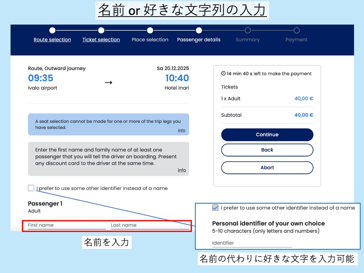 乗客情報の入力
