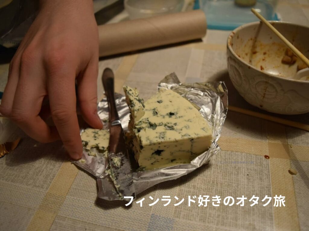 食事の準備をしながら、酒やAura juusto(ブルーチーズ)をつまんでいました。