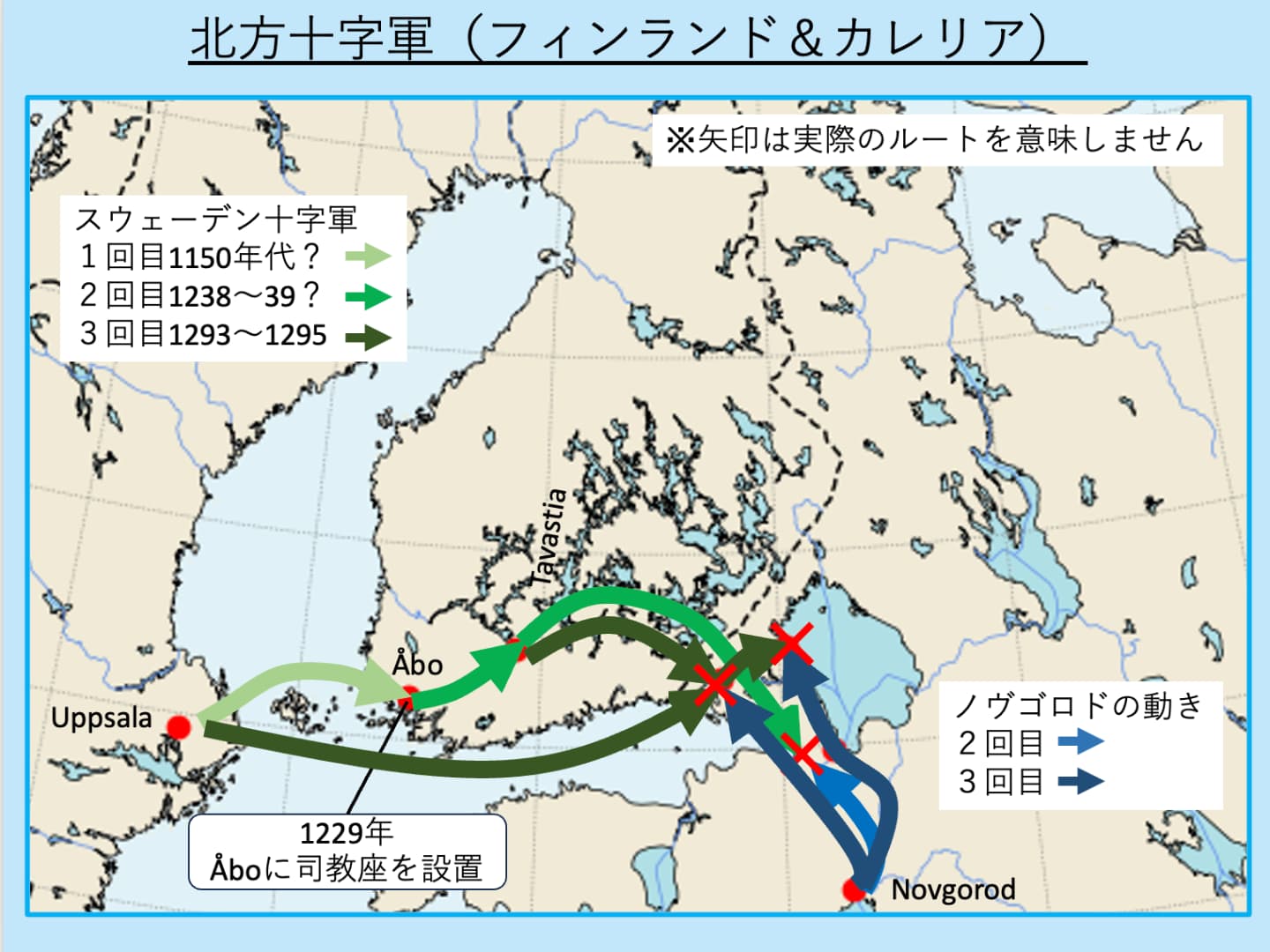 ノヴゴロド(ロシアの前身)がフィンランド方面への進出を目論んでいた頃、スウェーデンも、異教徒の改宗を名目にして、十字軍を派遣します。