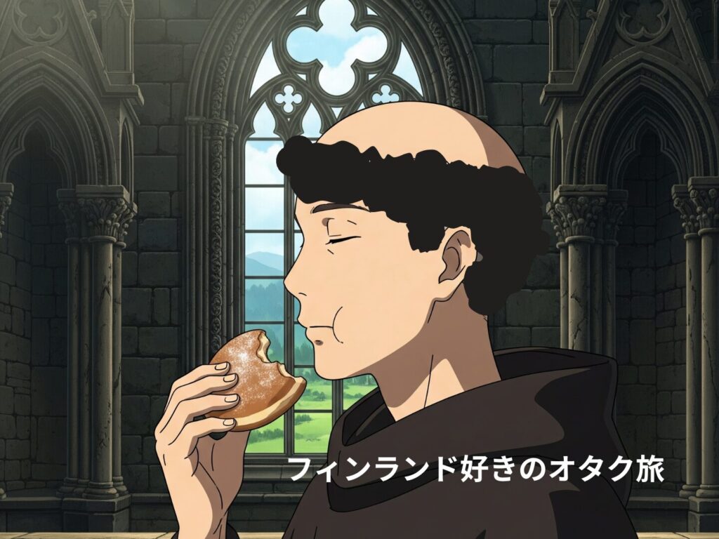 this is finlandによると、munkkiの名前の由来は、monk、すなわち修道士から来ています。修道士のローブに似た茶色と丸い形がドーナツの形に似ているから、そう名付けられたそうです。