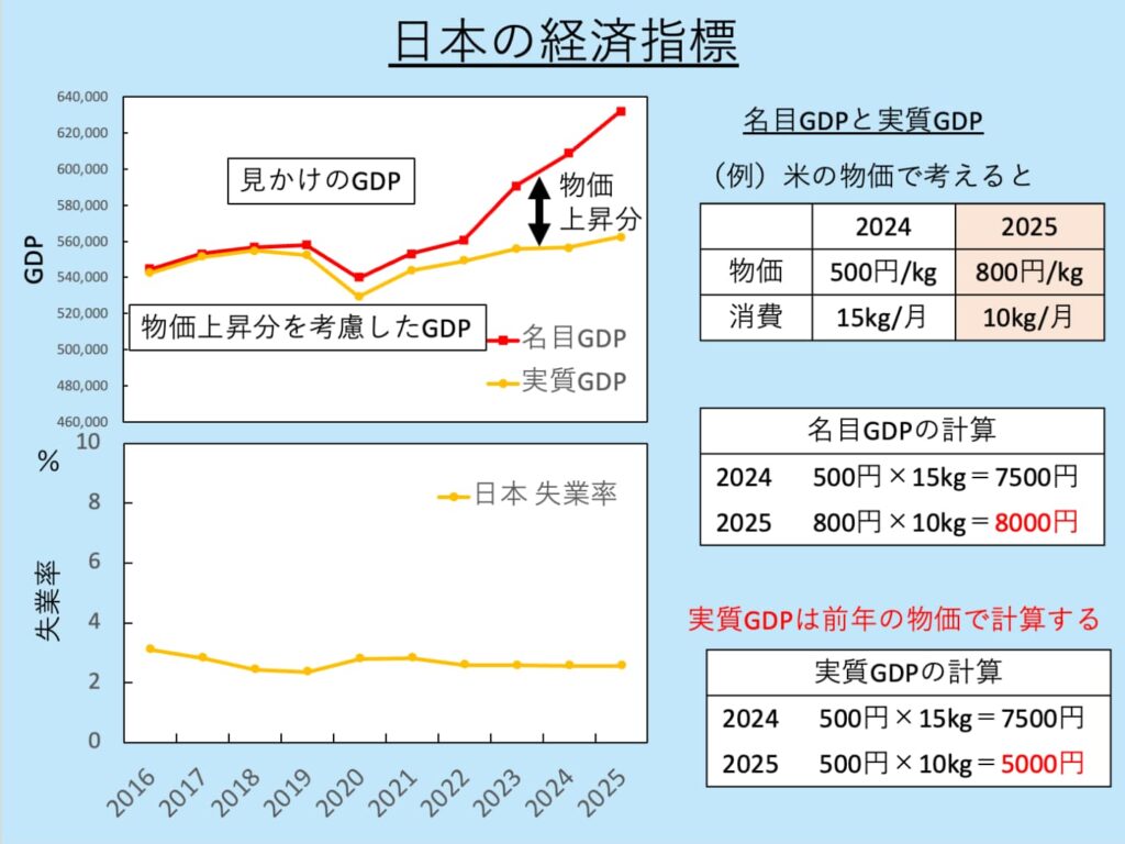 名目GDPと実質GDPの説明(日本を例に)