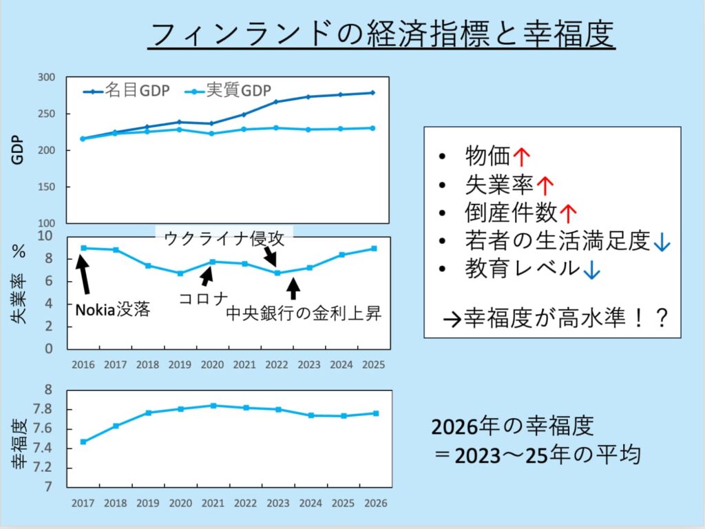 私の認識が間違っていなければ、だんだんとフィンランド情勢、悪くなっていっている気がするんだけど……。そもそも幸福度ってなんだ?