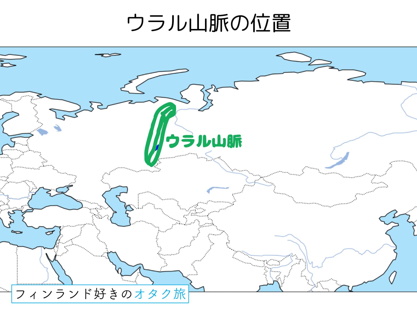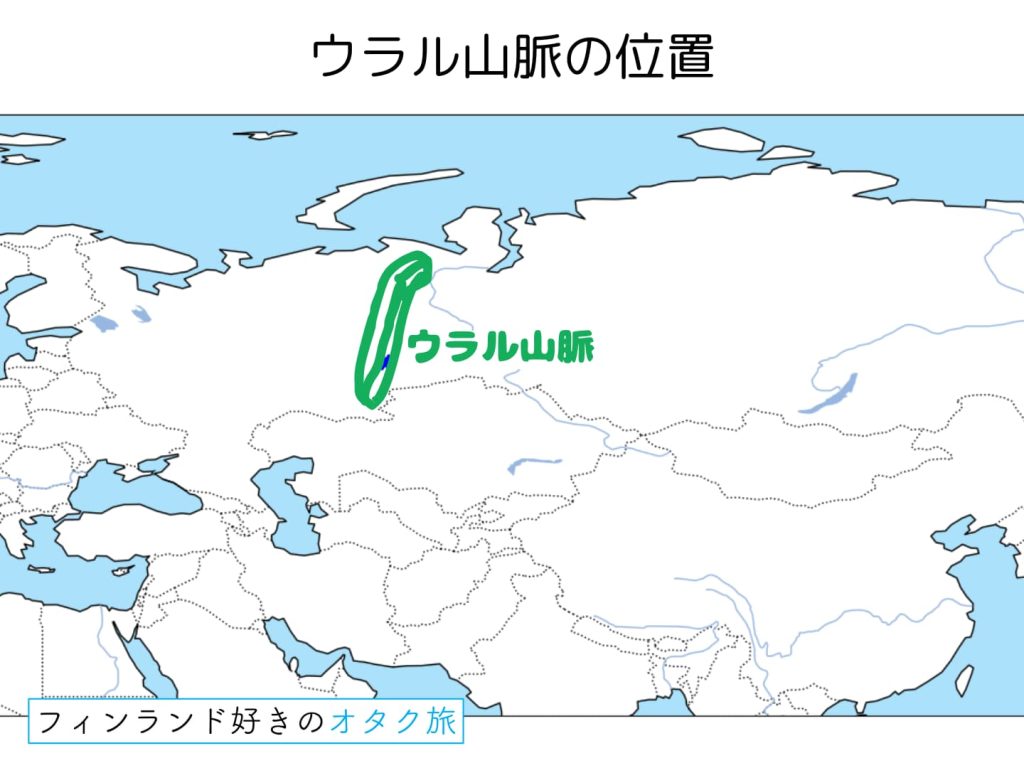 次に、今回のテーマである「ウラル語族」の「ウラル」が何を指すのかを見ていきましょう。「ウラル」とは、ロシア西部からカザフスタン北部にかけて南北に広がる山脈「ウラル山脈」や、そこを源流とする「ウラル川」に由来する地名です。