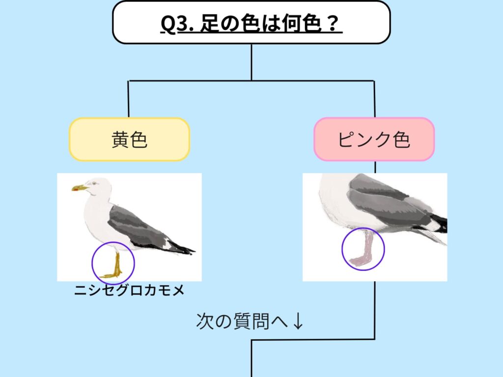 3種の中で、足の色が黄色なのは、ニシセグロカモメです。