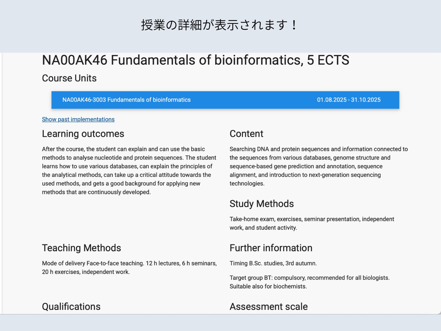 授業内容が表示されました!