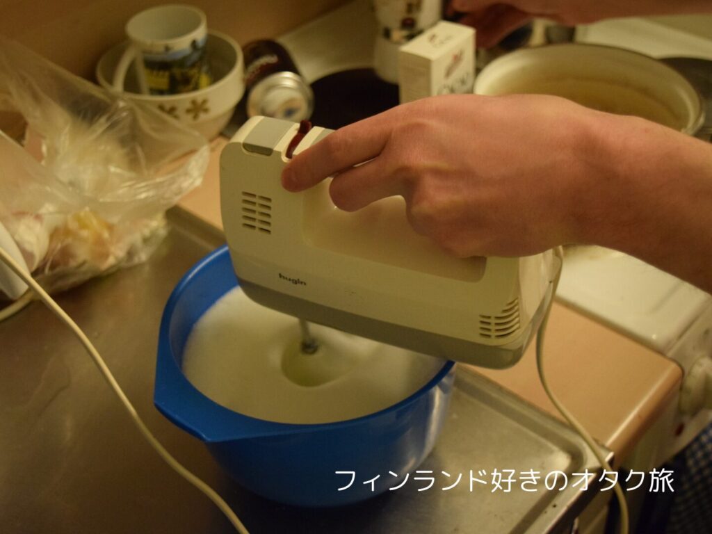 どこからか借りてきた電動泡立て器でメレンゲを作る。