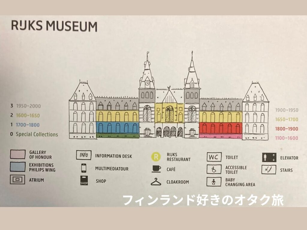 アムステルダム国立美術館は0〜3階まである、3階建て+半地下の構造になっています。