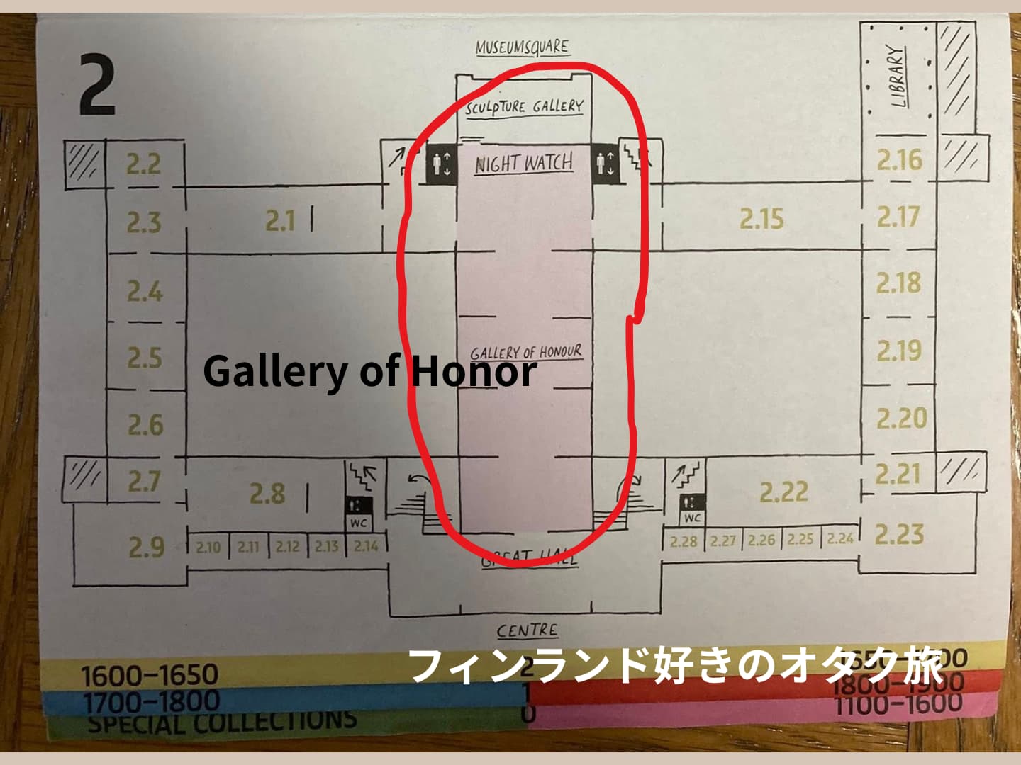 オランダ文化の主要どころは、2階の『Gallery of Honour』を回ってから、1階地図右側のゴッホの自画像や出島の展示などを見れば、ある程度押さえられます。