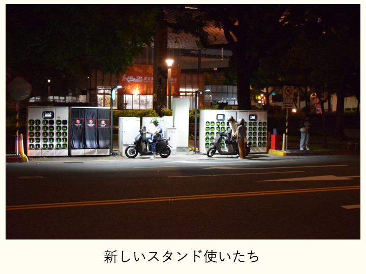 - 台湾は電動バイクがいっぱいで、電池スタンドがある!