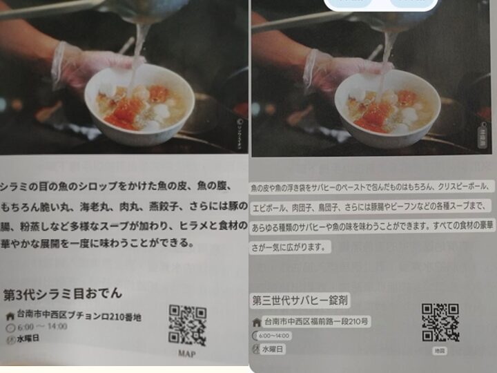 というわけで、翻訳アプリを楽しんだ私たちは、お昼御飯の場所を、実は四代目が経営する「第三代虱目魚丸」というお店に決めました。サバヒー屋なのか、おでん屋なのか、はたまた薬屋さんなのかわかりませんが、行ってみたらわかるでしょう。