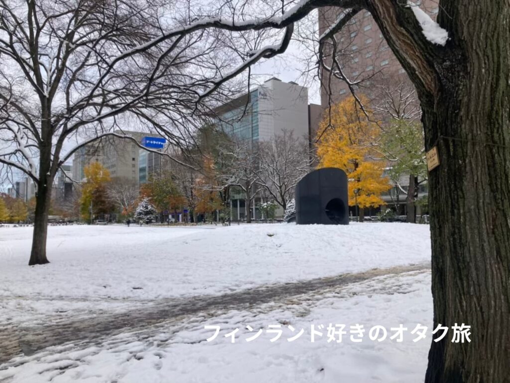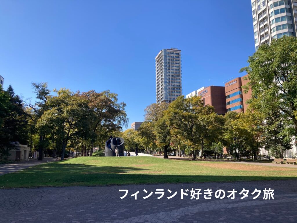 札幌の中心部。ビル街。札幌駅とすすきの駅の間を走る大通り公園の中。