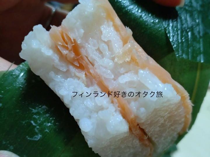 魚の身は締まっていると感じましたが、パサパサ系まではいかないです。ノルウェー産のサケ類(タイセイヨウザケsalmo salar or カラフトマスOncorhynchus gorbuscha??)を使っているようです。中に入っていた栞を見るに、昔は近場でサクラマスを獲っていたものと思われます。